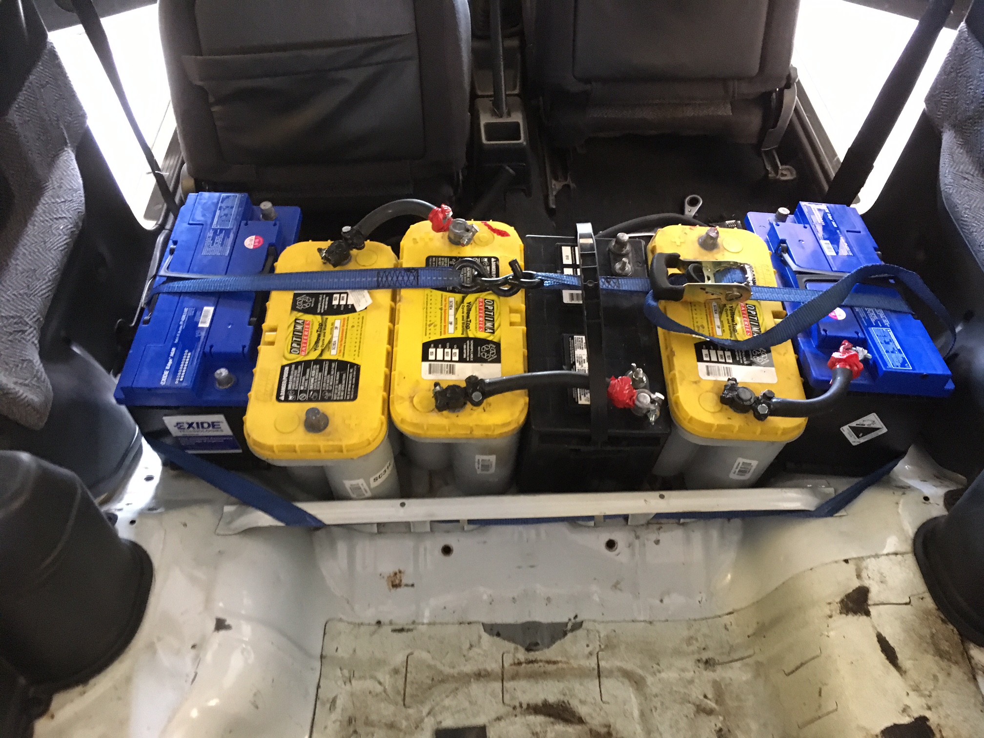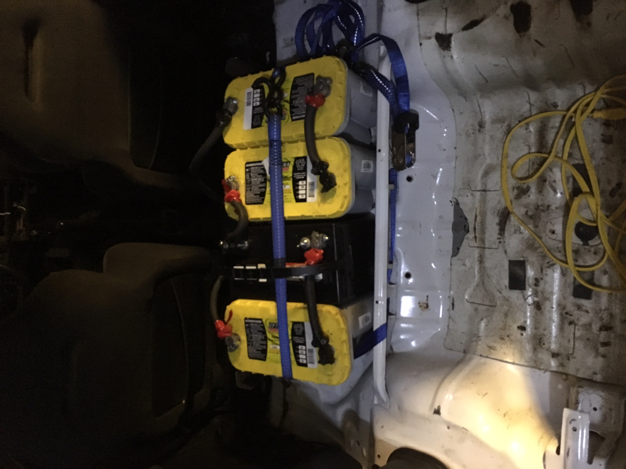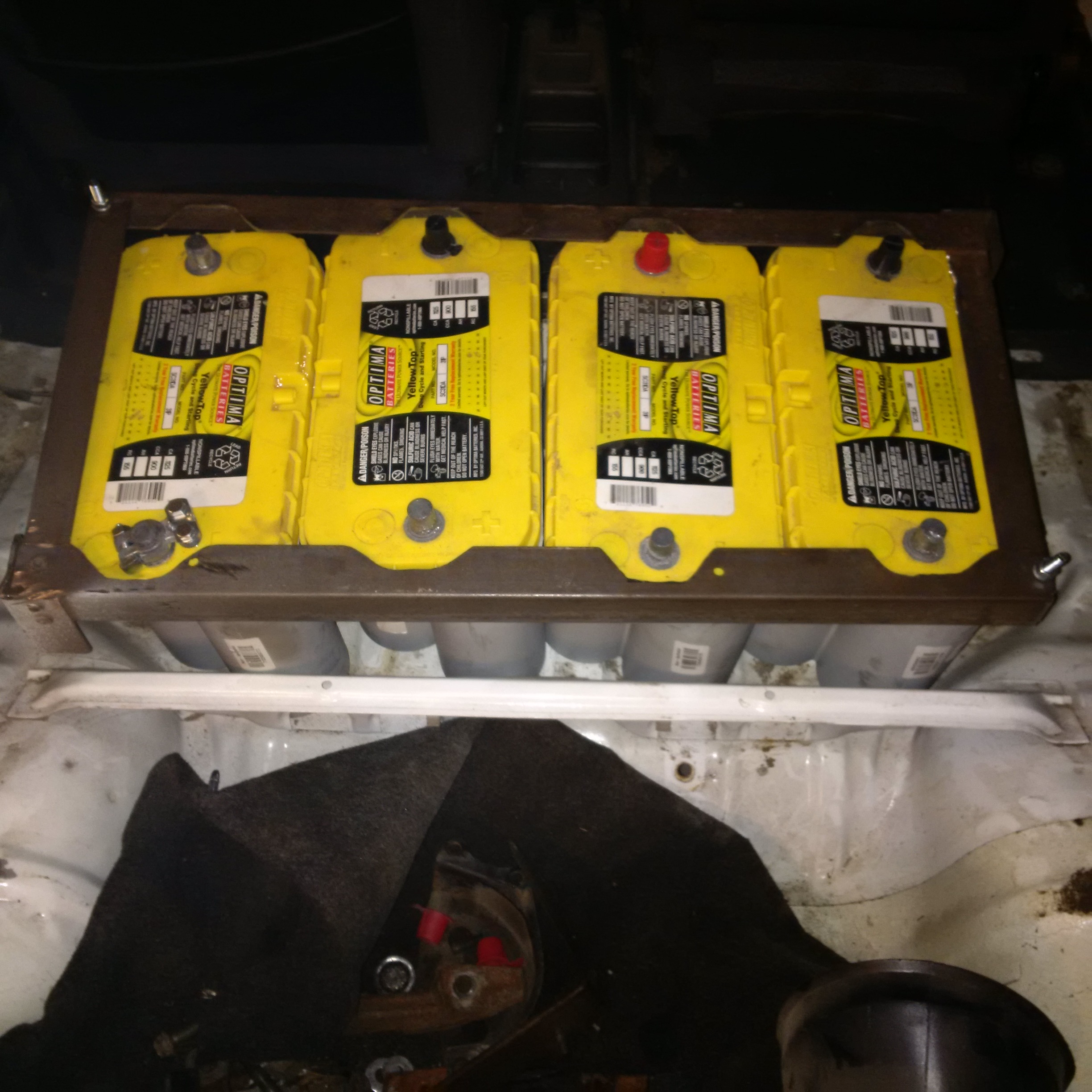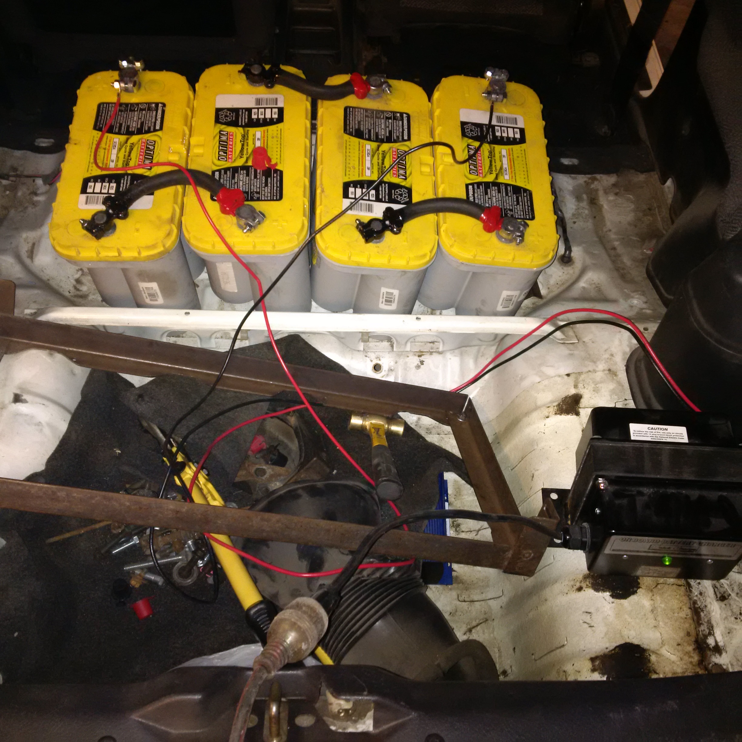 - get the batteries - Optima D31A's which I picked up at Rocky's Battery w/ 20% CAA discount - batteries will be located in an insulated battery box under the back seat