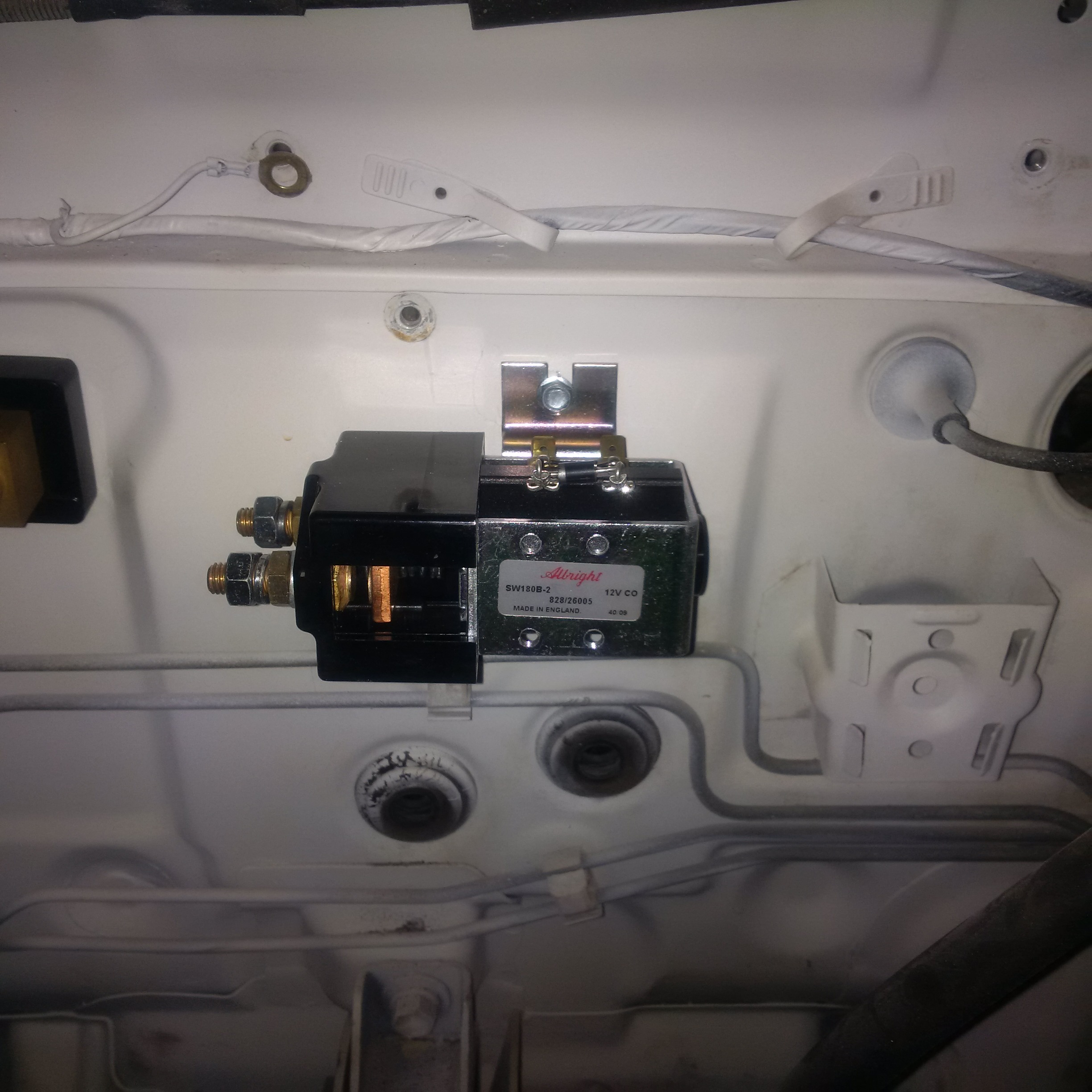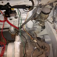 More electrical work done March 16, 2016 with the gauges working, the contactor going through the switched 12v key power and the reverse lights are working. The wiring for the reverse lights switch was thrown out with the ECM harness so I went to the wrecker to grab the two wires (red/yellow) I needed and the connector while trimming off all the ICE (internal combustion engine) wiring. Also fixed the broken horn with a replacement from the wrecker and got the other marker light pigtail I needed for the front.
