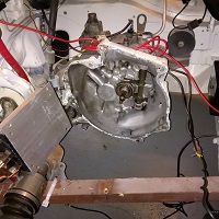 The first picture is the transmission with the engine out. Removal took about 30 minutes flat with some help. The second picture is the motor with the coupler with the piece of engine shaft still in there. Thinking the next coupler will be a lovejoy coupler as that will have a little give. Either that, or I need to pick a motor with a larger diameter output shaft that's stronger. I had no sign this was about to fail when it did and I previously had the car as fast as 65 kph and also rev'd it to the max in neutral a couple of times while missing shifts without issue, vibration, or pending doom. I also need to redesign the engine mount so it's suspended instead of supported which is probably the biggest issue.