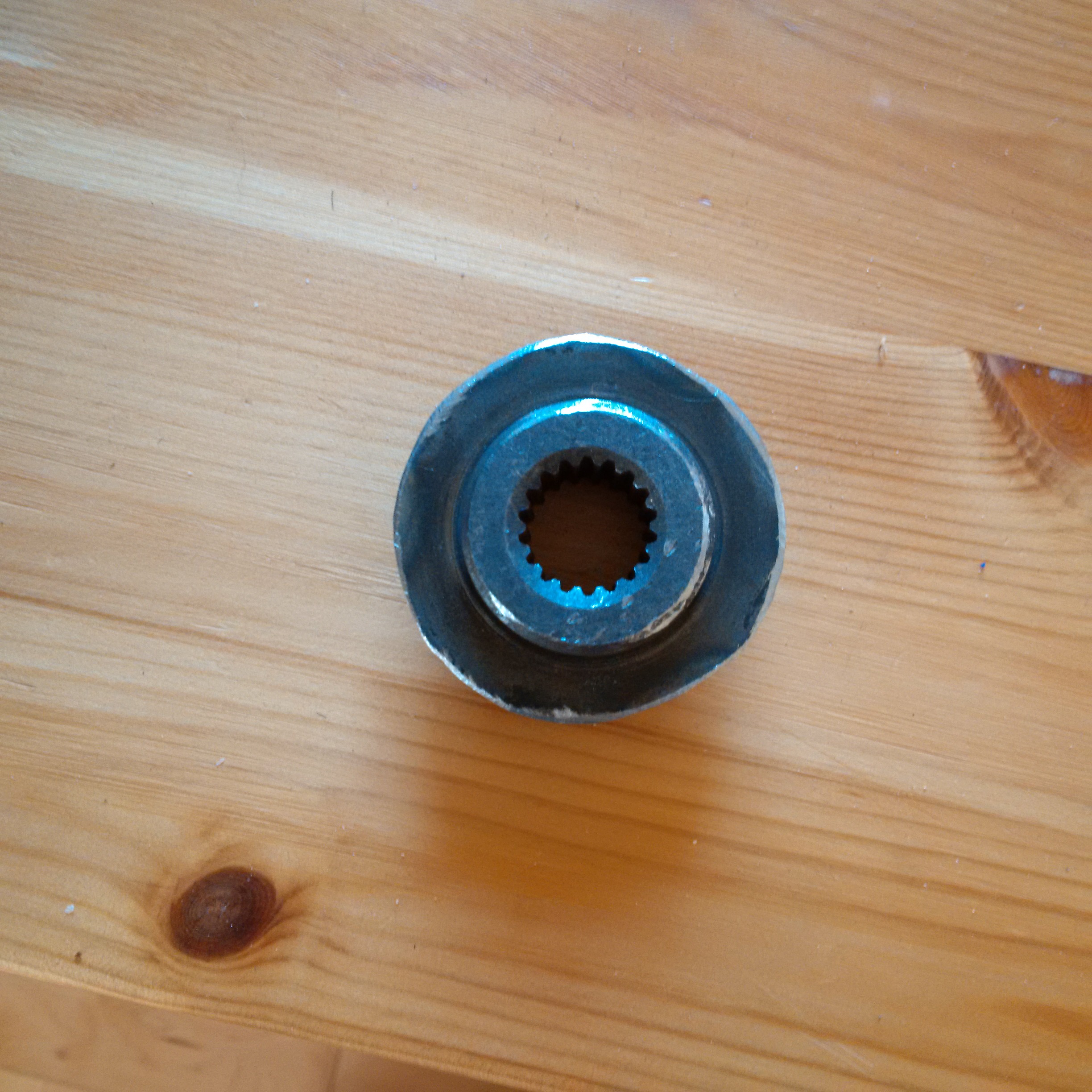 Did a bunch of work June 22, 2016 and tidied up the cabling for the power underneath the car before starting to work on the rear third of the belly pan. Went for a test drive after just doing the first bit on the belly pan and went 22.4 km and the odometer hit 310K! Also got the spline carved out of the old clutch disc to pursue getting a lovejoy coupler built by Alberta Rewind.